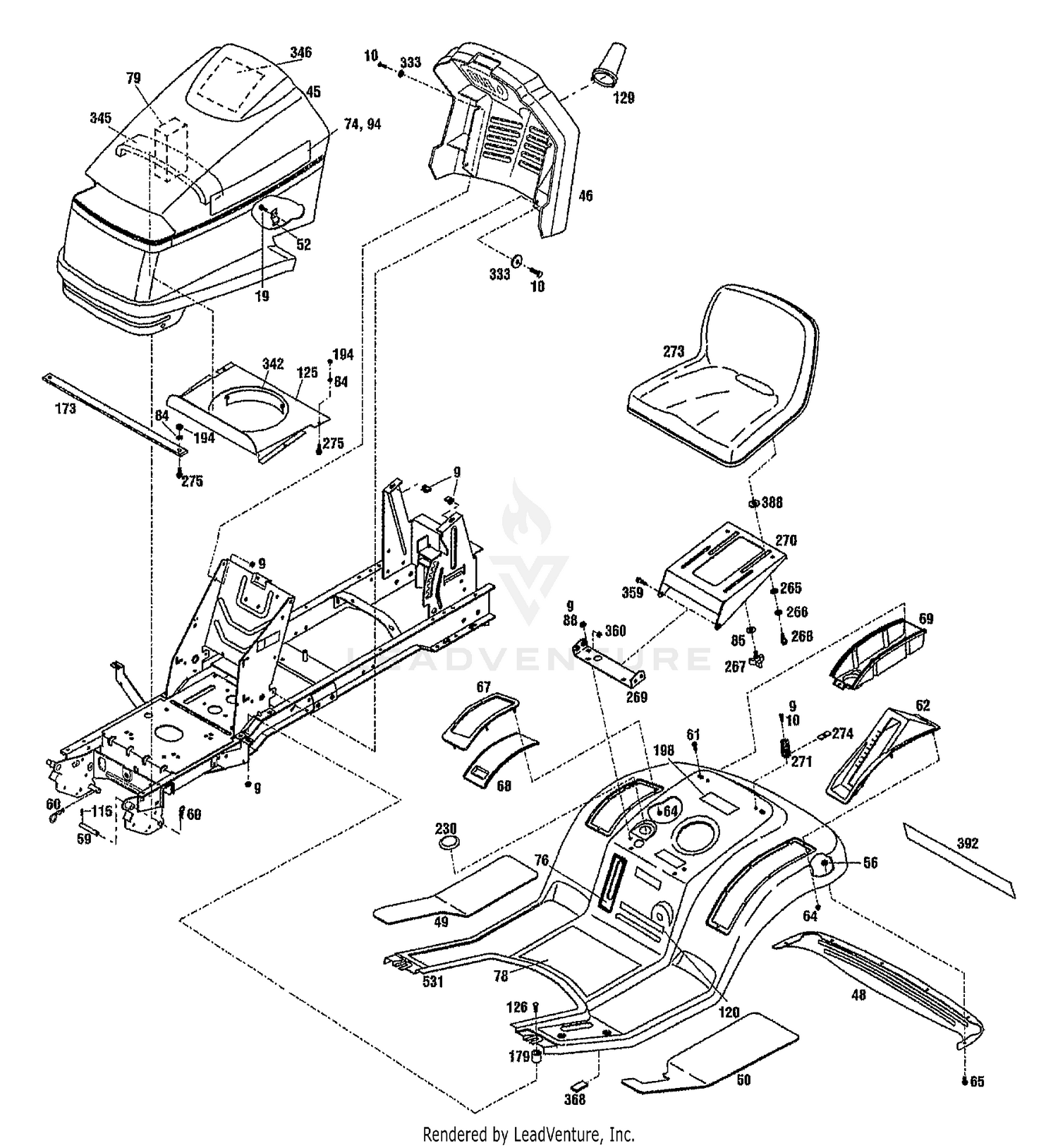 Troy Bilt 13104 15 5hp Ltx Hydro Lawn Tractor S N 131040100101 Bodywork Trim Assembly